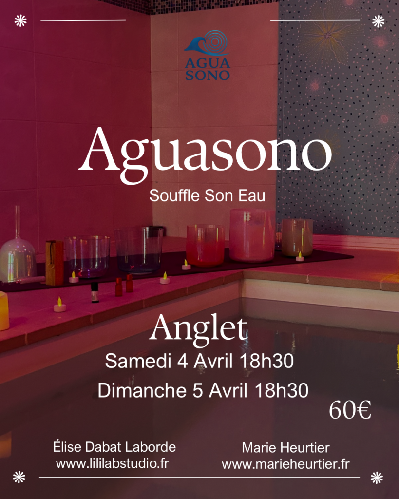 Deux dates chaque mois, pour une expérience holistique d’une heure trente de sonothérapie & d’@guasofrologie. Un soin sonore aux bols tibétains et bols de cristal dans un bassin d’eau chauffée : laissez vous portez par l’eau et le son guérisseur des bols ! Ce soin cocréé avec Marie HEURTIER praticienne @aguasofro est unique au monde. Il vous embarque vers un voyage intérieur porté par les vibrations des bols et l’eau.