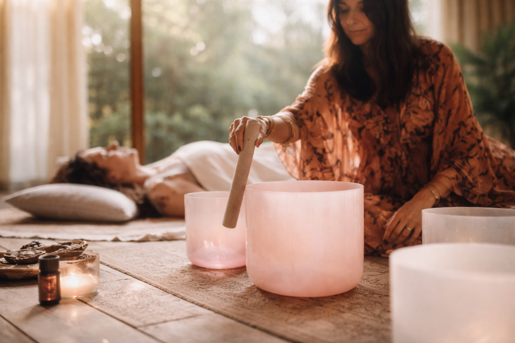 Les bains sonores aux bols de cristal offrent un espace rare :