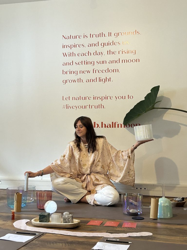 Ambassadrice de la marque d’articles de yoga, pilates, méditation et ayurvéda éco-responsables B,HALFMOON depuis 2023, je partage des bains sonores au bols de cristal dans leur showroom et lors de leurs événements. Je suis heureuse de faire rayonner cette marque et soutenir un mouvement collectif visant à vivre en harmonie avec la planète.
